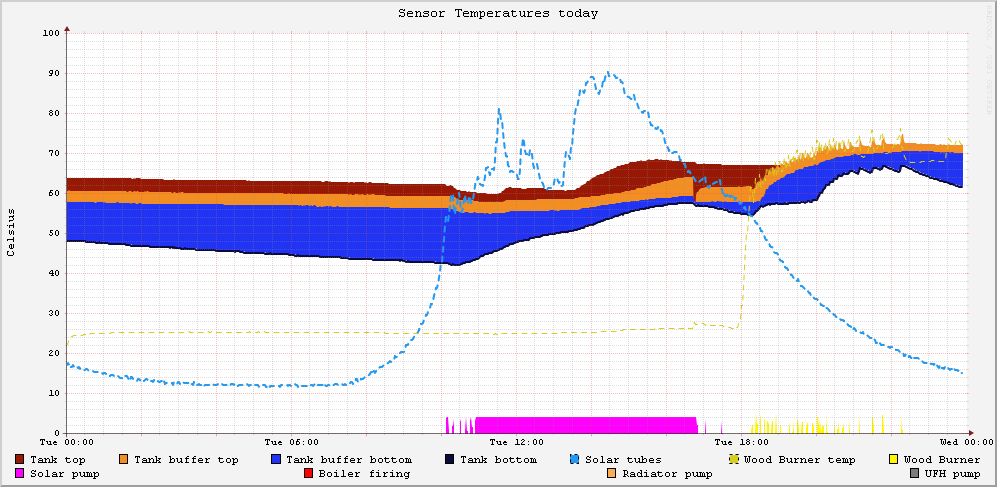 Solar gain today 8 kWh - Current Solar gain rate 0 kW - Solar gain since June 2011 45785.895 kWh